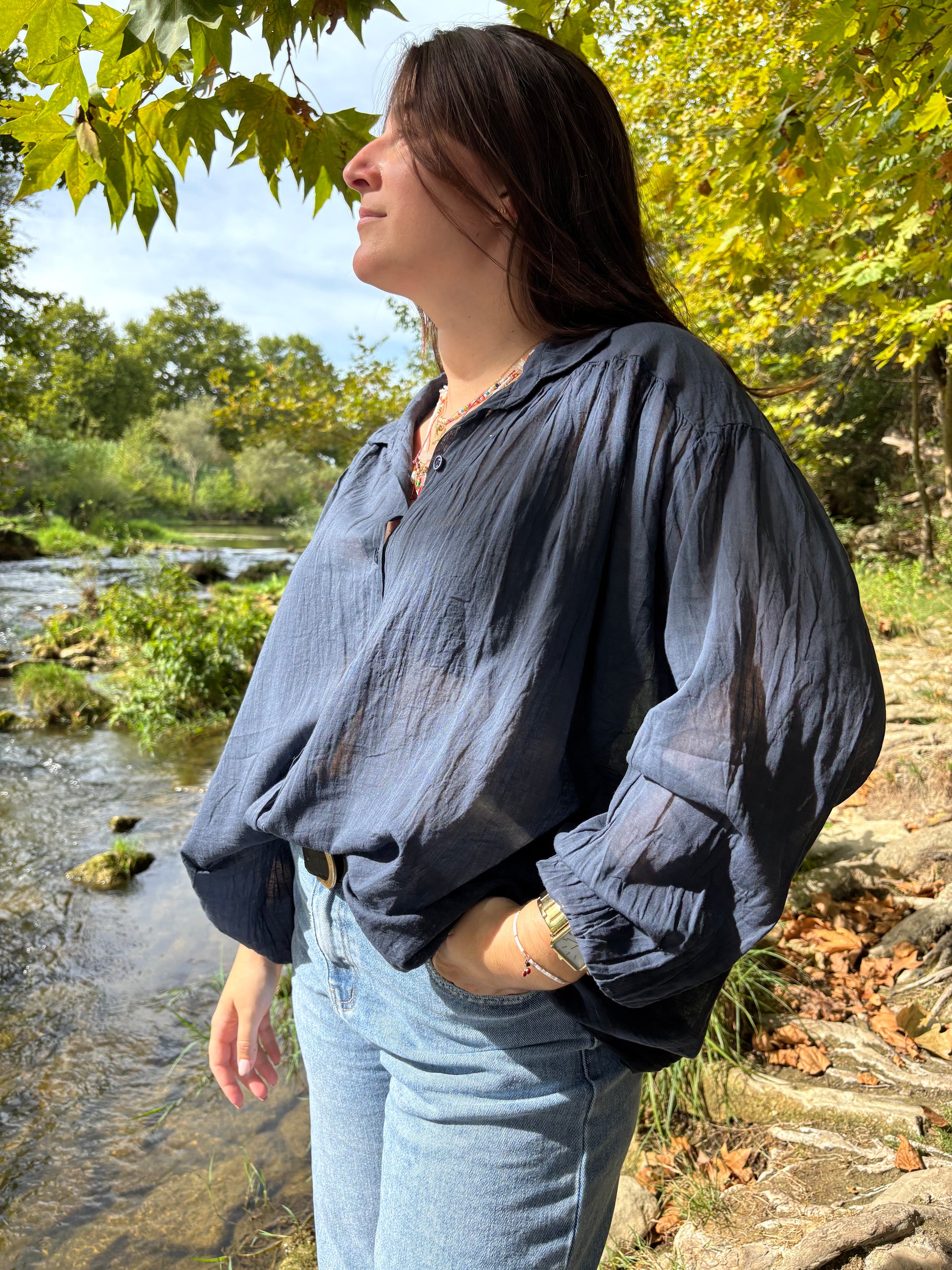 - Chemise, manches longues (légèrement transparente)